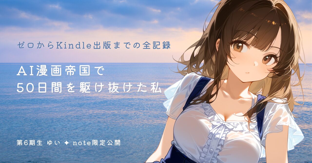 今日は私が 「AI漫画帝国」に第6期生として入国し、たった50日でKindle出版まで駆け抜けた体験談 をシェアします。
